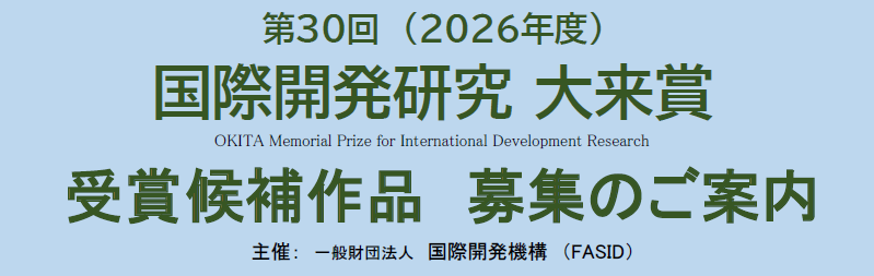 「国際開発研究大来賞」は、学術の振興、国際開発の分野における研究奨励と促進、優れた図書の発掘に資するため、国際開発の様々な課題に関する優れた指針を示す研究図書を顕彰するものです。